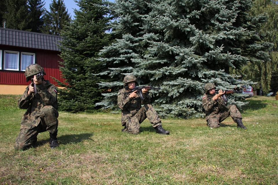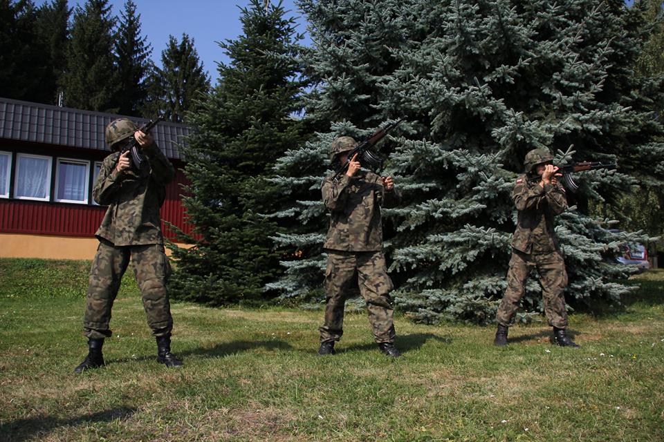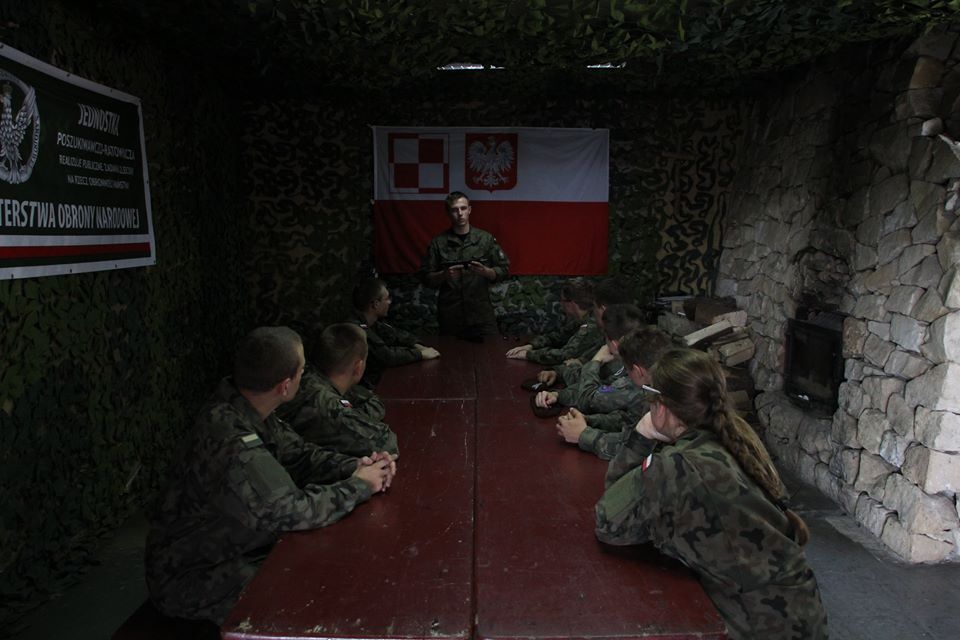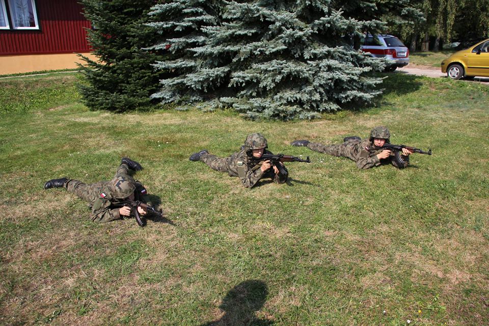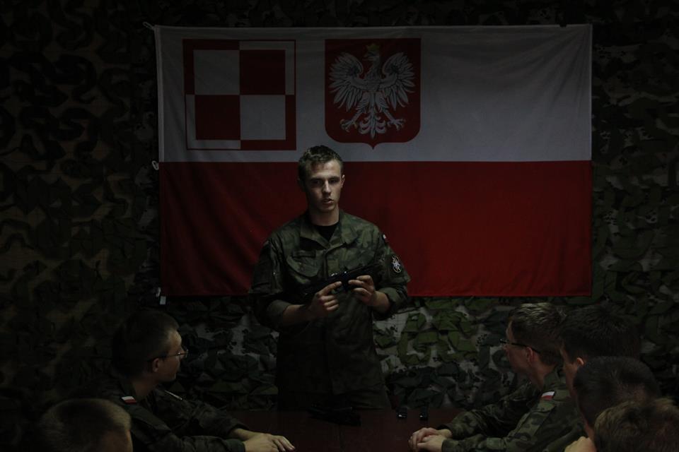 Pod prawie trzech godzinach pracy w pełnym wojskowym rynsztunku należy się przerwa- tak też było, po 15 minutach odpoczynku udaliśmy się na zajęcia z “Taktyki Zielonej” prowadzone przez kadeta Macieja Zdancewicza.