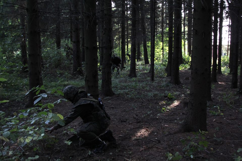 Jak się zaczęło? Odpowiedź: szybko i ciężko jest chyba wyczerpująca. Od razu po wyjściu z samochodu cały oddział udał się do miejsca poboru wyposażenia i oddelegowani do zajęć. Na początku było to tworzenie “przeprawy dla piechoty”, czyli karczowanie w gęstym lesie wszystkiego powyżej 5 cm nad ziemią. Szczerze nie uwierzyłbym, że człowiek jest w stanie ściąć małe drzewo za pomocą tylko i wyłącznie wojskowej saperki. Tamten wyjazd uświadomił mi jednak, że jest to możliwe.