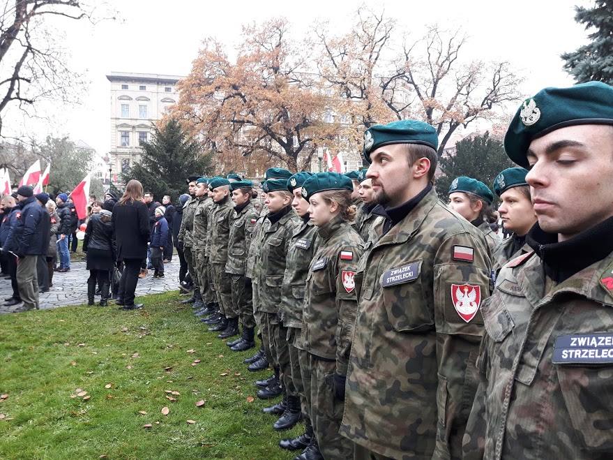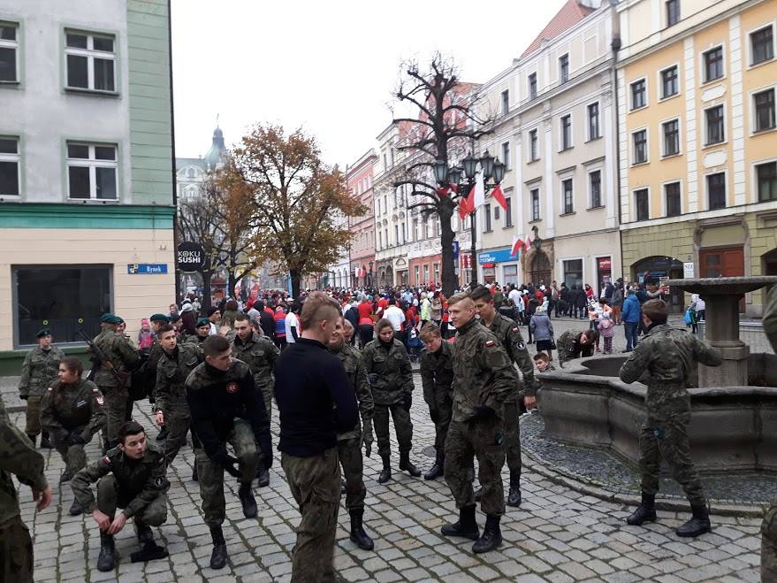 11 listopada to szczególny dzień dla Polski i Polaków a zwłaszcza dla Strzelców Związku Strzeleckiego, bo to właśnie w tym dniu obchodzimy Święto Odzyskania Niepodległości. To już 98 rocznica jak Polska oswobodziła się spod jarzma ciemięzców. Z tej okazji Oddział Wrocław wraz z Oddziałem Świdnica wziął udział w uroczystościach państwowych w Świdnicy. Na zaproszenie Urzędu Miejskiego, w ramach współpracy z lokalną społecznością Oddziały zabezpieczały przemarsz ludności na miejsce uroczystości, które, jak co roku odbywają się na placu Grunwaldzkim pod pomnikiem. Strzelcy, jak co roku pełnili wartę honorową pod pomnikiem, a Kompania reprezentacyjna złożona z strzelców oraz kandydatów na strzelców godnie reprezentowała Okręg IV ZS. W imieniu Związku Strzeleckiego wieniec okolicznościowy złożyła delegacja strzelców w składzie Komendant Okręgu IV pchor. ZS Stefan Chałat, Komendant Oddziału Świdnica mł. insp. ZS Dariusz Sienko oraz druż. ZS Aleksander Szaflik. Po uroczystościach strzelcy udali się na miejsce spoczynku legionisty Kozara-Słobódzkiego, aby zapoznać się z historią legionisty, którego imię wkrótce może zostać nadane Oddziałowi Świdnica. Na koniec strzelcy zapalili znicz oraz oddali hołd poległemu bohaterowi. Jak co roku nie mogło obyć się bez udziału w biegu patriotycznym uliczkami Świdnicy w tym roku udział wzięło 23 strzelców z roku na rok jest Nas coraz więcej, co cieszy. Ostatnim akcentem tego dnia było spotkanie na Komendzie Oddziału Świdnica, gdzie strzelcy nie marnując czasu przeszli szkolenie z budowy karabinka AKMS. Wszystkim serdecznie dziękuję za liczne przybycie i za wzorową postawę podczas tak doniosłego święta.