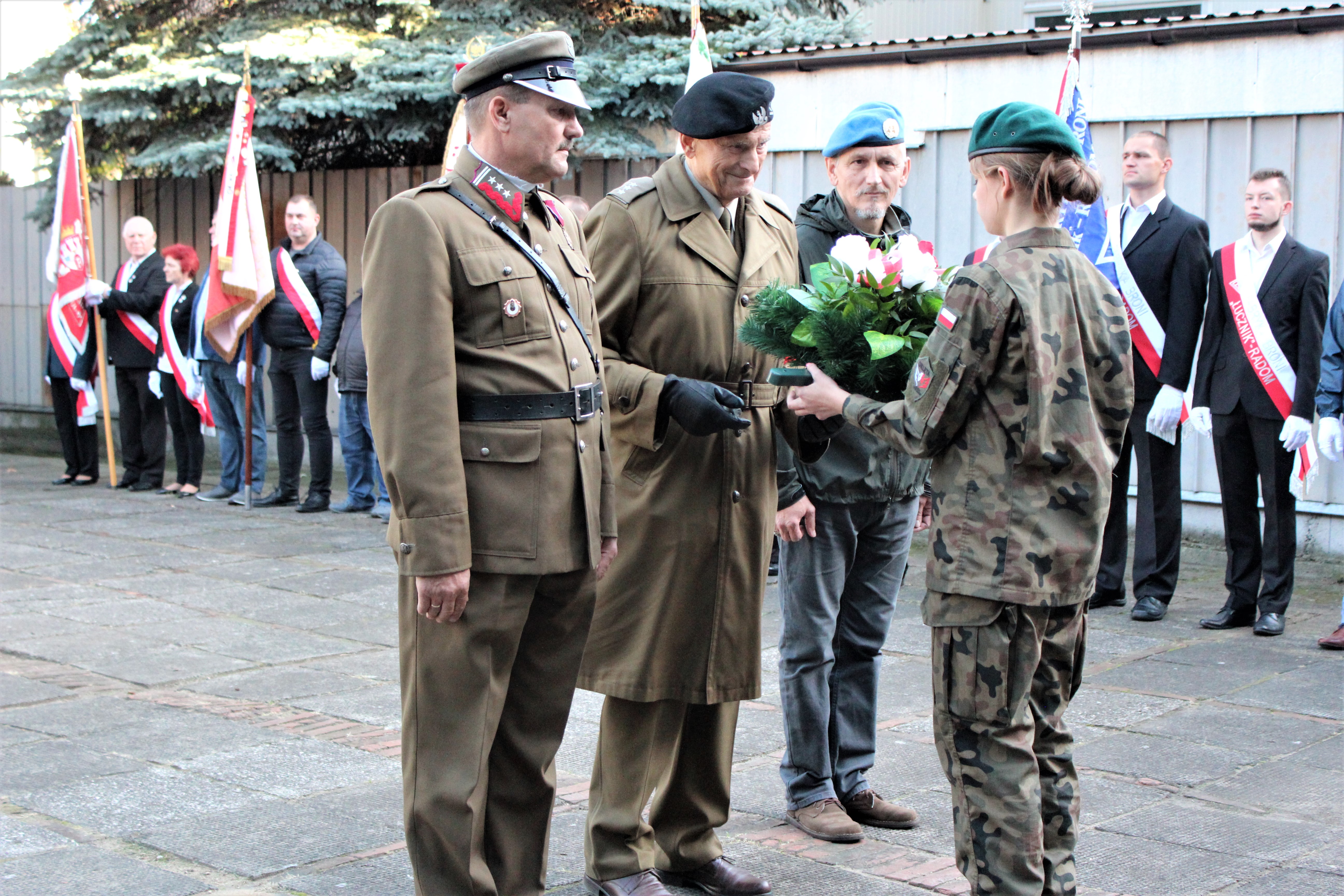 14 października br., po zakończeniu pracy przed Pomnikiem odbyła się uroczystość, na którą oprócz prezesa zarządu, członków dyrekcji, kierownictwa, władz fabrycznych organizacji związków zawodowych i pracowników przybyły reprezentację Rady Miejskiej, Urzędu Miasta, Starostwa Powiatowego, Światowego Związku Żołnierzy Armii Krajowej, Stowarzyszenia Osób Internowanych i Represjonowanych w Stanie Wojennym, Stowarzyszenia Radomski Czerwiec’76, Zarządu Regionu Ziemia Radomska, Związku Strzeleckiego, kibiców BRONI RADOM, oraz byli i aktualni pracownicy ŁUCZNIKA, mieszkańcy miasta. Okolicznościowe przemówienia nawiązujące do tamtego wydarzenia wygłosili prezes Adam Suliga, wice prezydent miasta Jerzy Zawodnik, prezes ŚZŻAK Tadeusz Adamczyk, Andrzej Sobieraj oraz Bożenna Winczewska, która podczas tamtych egzekucji straciła 11 członków swojej rodziny. Chwilą ciszy i skupienia oddano hołd bestialsko zamordowanym pracownikom fabryki. Odmówiono modlitwę. Oficjalne delegacje złożyły przy pomniku wiązanki kwiatów. Zapalono znicze. Komendant Główny Związku Strzeleckiego Roman Burek odczytał modlitwę za Ojczyznę napisaną przez Piotra Skargę. Następnie uczestnicy obchodów przeszli pod obelisk poświęcony wszystkim straconym pracownikom fabryki, zamordowanych przez niemieckich okupantów. Delegacje złożyły kwiaty. Na zakończenie, Zbigniew Cebula apelował o podjęcie wspólnego wysiłku i przywrócenie godnego wyglądu dla miejsca niemieckiej zbrodni. Po odśpiewano hymnu państwowego, lider fabrycznej „Solidarności” podziękował wszystkim za przybycie na uroczystość.