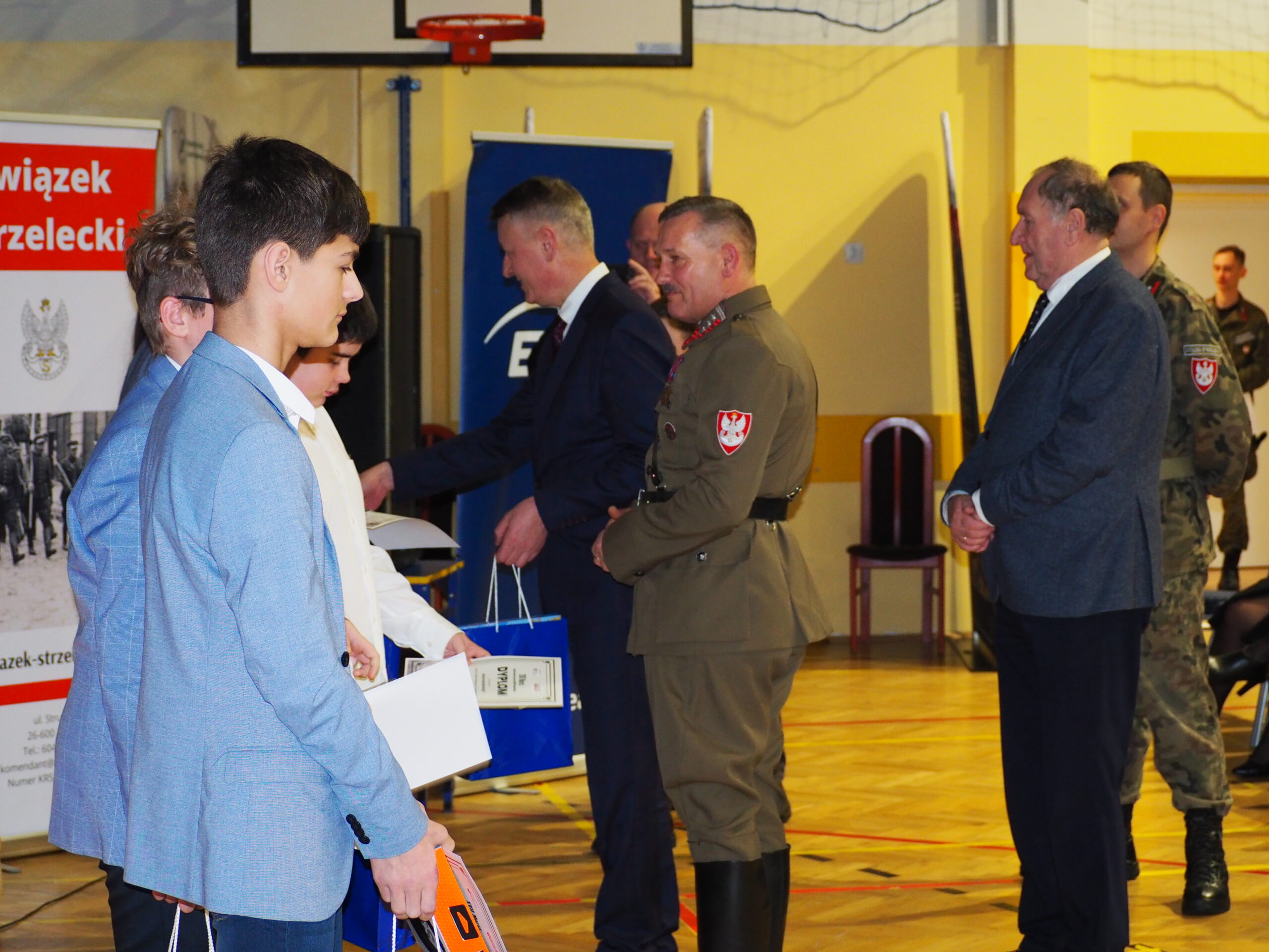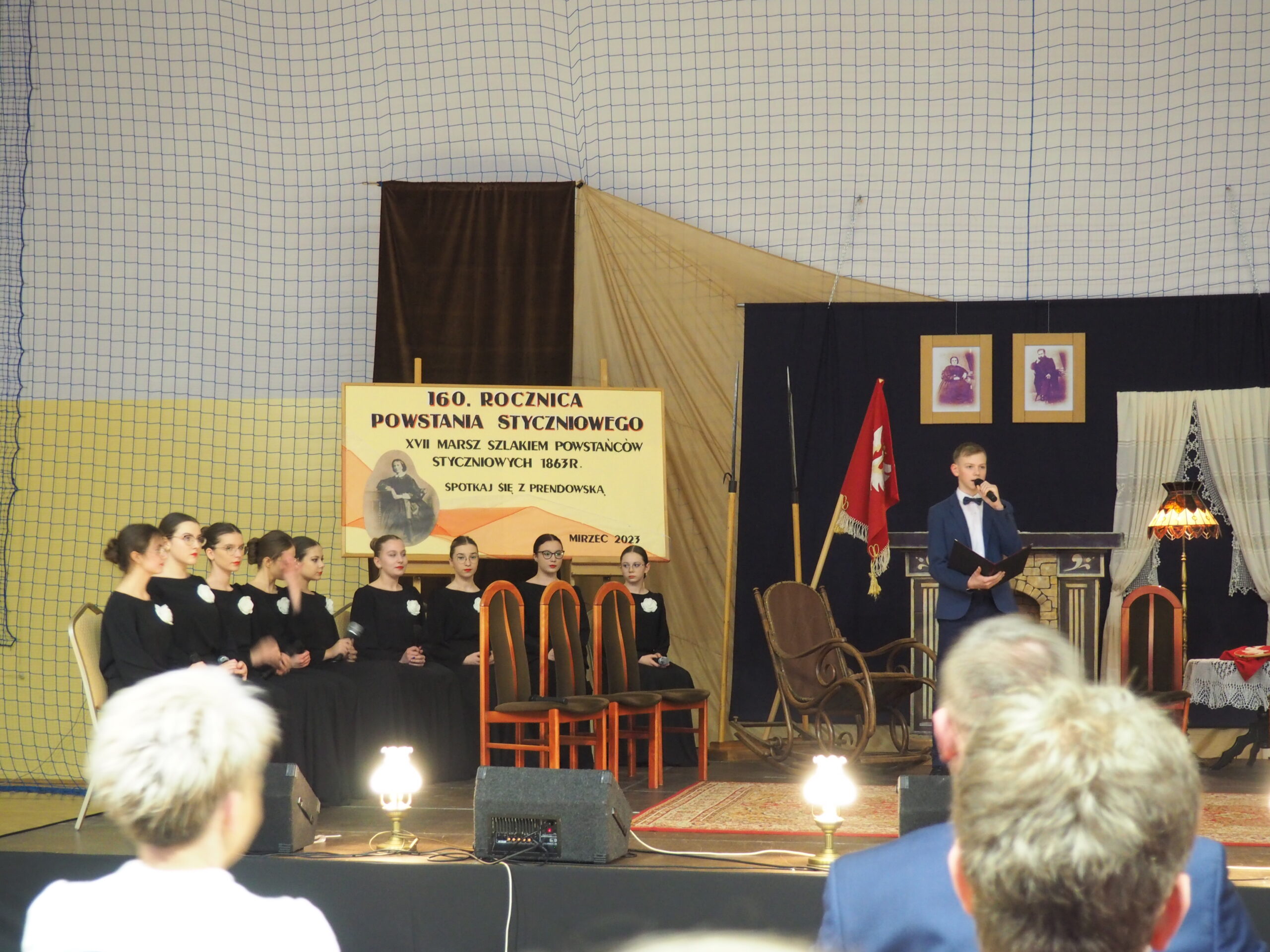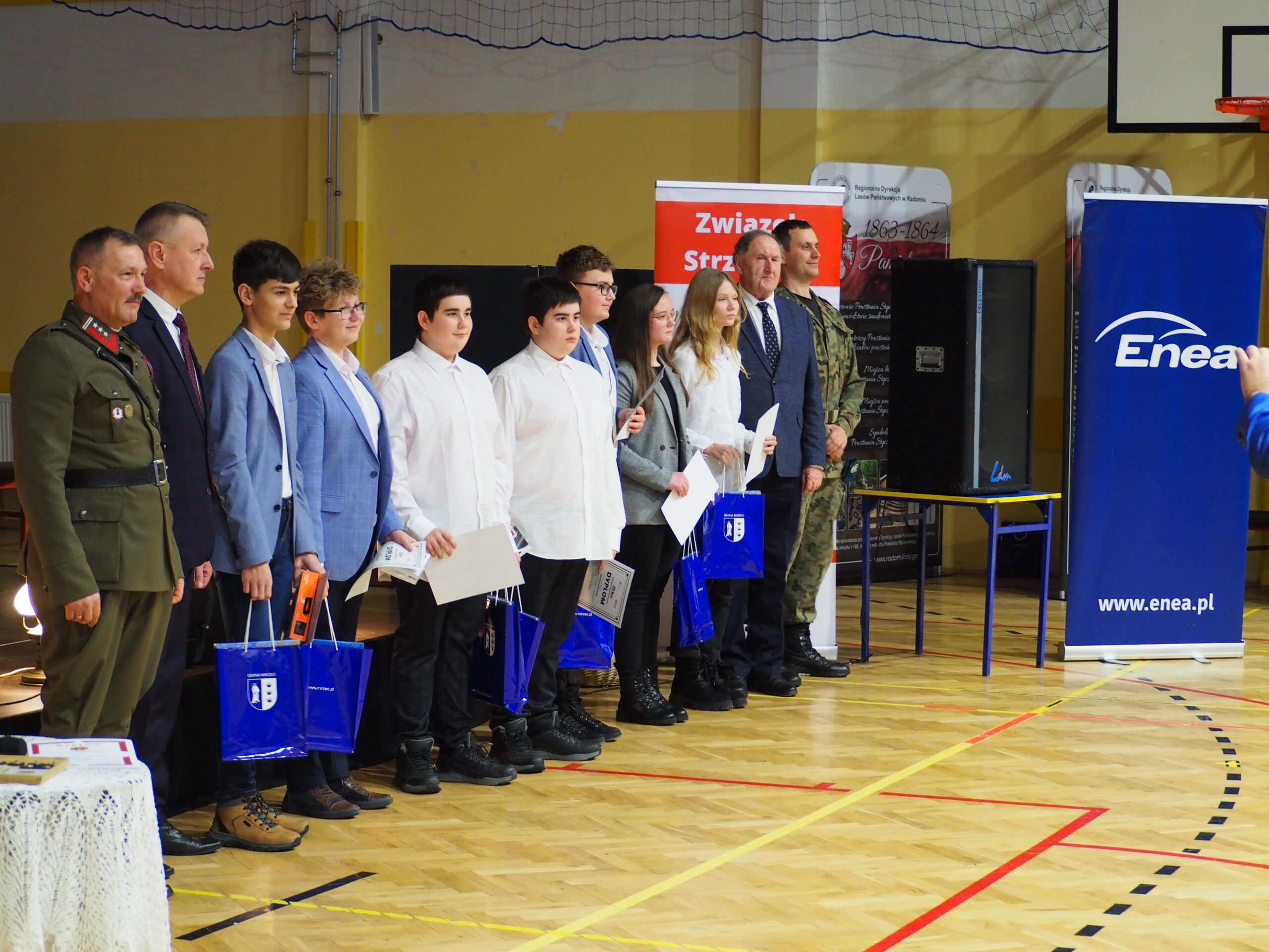 Zebrani wysłuchali także prelekcji Lechosława Wąsika na temat sylwetki rotmistrza Jana Prendowskiego, po czym komendant Roman Burek ogłosił wyniki konkursu historycznego, zorganizowanego pod patronatem Ministerstwa Edukacji i Nauki w ramach obchodów rocznicy wybuchu Powstania Styczniowego. W konkursie udział wzięło 84 uczniów z 19 szkół. Do grona laureatów zakwalifikowało się siedem osób, które zajęły miejsca od pierwszego do siódmego: Marcel Nyga uczeń Szkoły Podstawowej nr 6 w Starachowicach, Mateusz Wójcik uczeń Szkoły Podstawowej w Małyszynie, Michał Malinowski i Jakub Malinowski uczniowie Szkoły Podstawowej nr 11 w Starachowicach, Konrad Kleczaj i Zuzanna Barszcz uczniowie Szkoły Podstawowej w Małyszynie oraz Amelia Wrona uczennica Szkoły Podstawowej nr 6 w Starachowicach. Laureaci otrzymali nagrody ufundowane przez Związek Strzelecki oraz wójta gminy Mirzec Mirosława Seweryna.