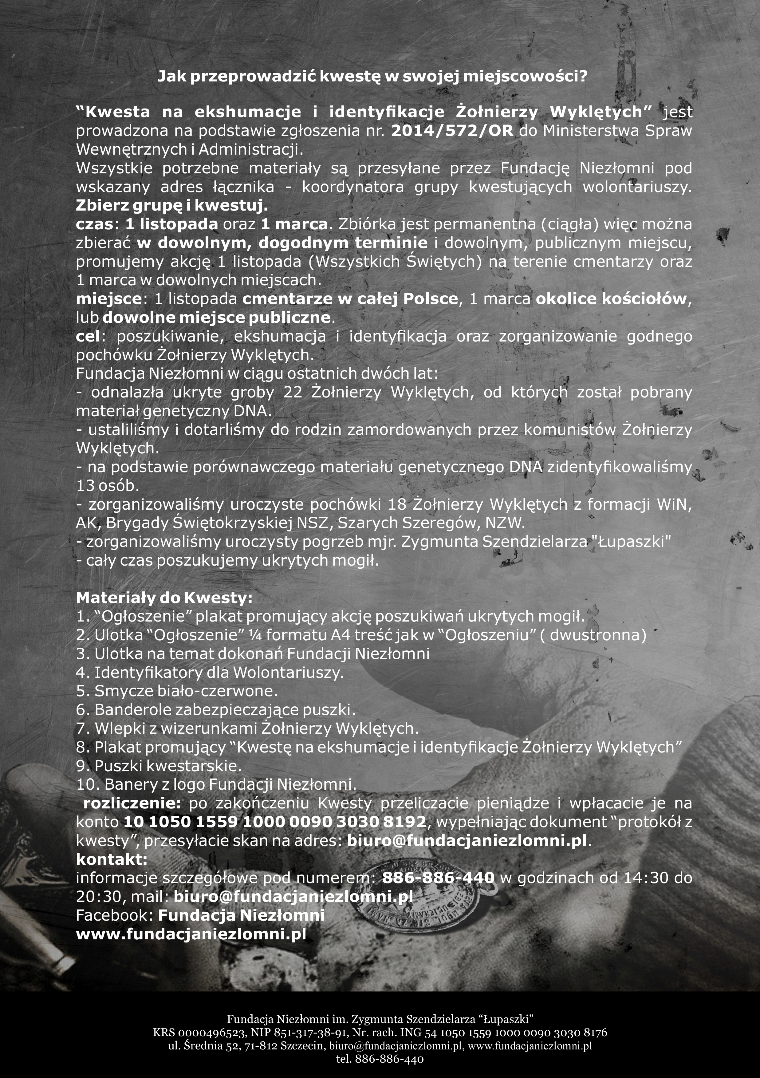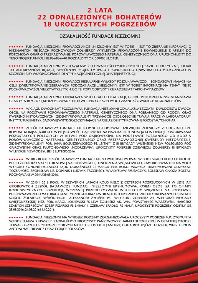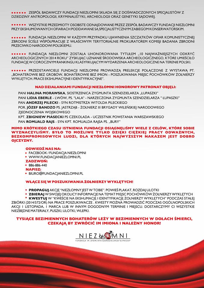 27 października 2016ArtykułyRobert Fidura Wszelkie informacje w materiałach przesłanych nam z Fundacji NIEZŁOMNI, opublikowanych poniżej. www.fundacjaniezlomni.pl