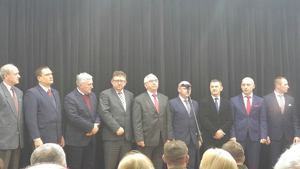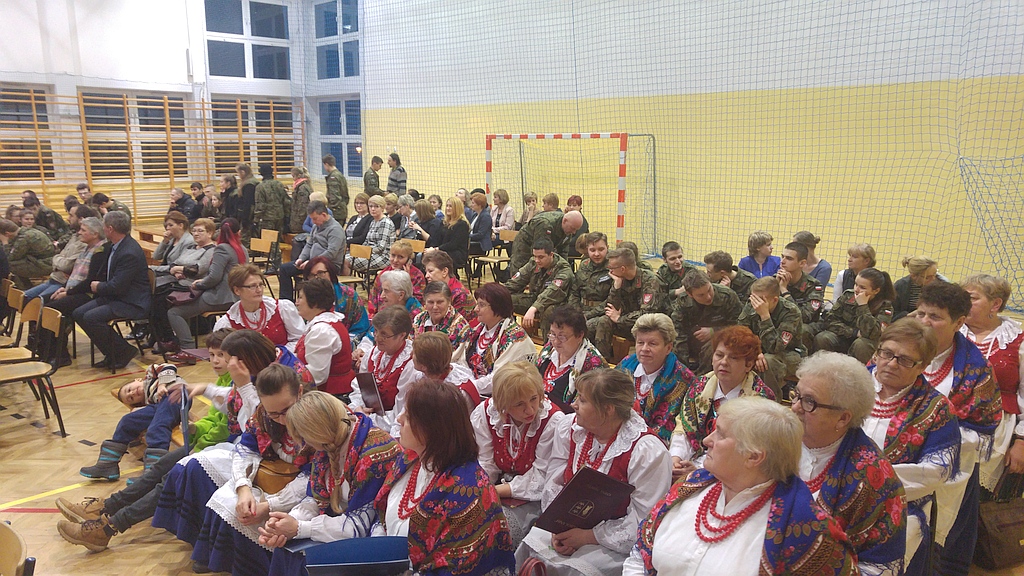 Dyrektor Alicja Raczyńska i wójt Mirosław Seweryn powitali przybyłych do odnowionej hali Zespołu Szkół w Mircu gości, a byli wśród nich: przewodnicząca Rady Gminy w Mircu Agnieszka Idzik-Napiórkowska, starosta Dariusz Dąbrowski, zastępca Prezydenta Starachowic Jerzy Miśkiewicz, przywitano również bardzo gorąco uczestników XI Marszu Komendanta Głównego Związku Strzeleckiego Romana Burka, Komendanta I Okręgu Wiesława Mizerskiego, Komendanta SOK Beliniak Leszka Marcinkiewicza, Komendant Oddziału ZS Legnica Czesława Dula, Komendanta Oddziału ZS Szydłowiec Andrzeja Górskiego, Komendanta Oddziału ZS Puławy Rafała Bociąga, zastępcę Komendanta Oddziału Warszawa Janusza Ziembickiego, przedstawicieli Związku Piłsudczyków z Radomia oraz Małogoski Oddział Powstańczy 1863 r., działający przy Domu Kultury w Małogoszczu, dyrektorów szkół, nauczycieli, radnych, sołtysów, zespoły folklorystyczne z Mirca, Osin i Trębowca oraz mieszkańców gminy Mirzec.