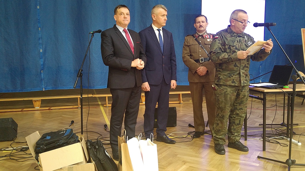 Jeszcze przed konkursem historycznym miało miejsce niecodzienne wydarzenie – wręczenie pierścienia Komendantowi Głównemu ZS st. insp. ZS Romanowi Burkowi, w uznaniu zasług dla krzewienia etosu Żołnierzy Wyklętych oraz wspierania pracy Fundacji Niezłomni ofiarowany pierścień Fundacji wręczył Prezes Fundacji Wojciech Łuczak.