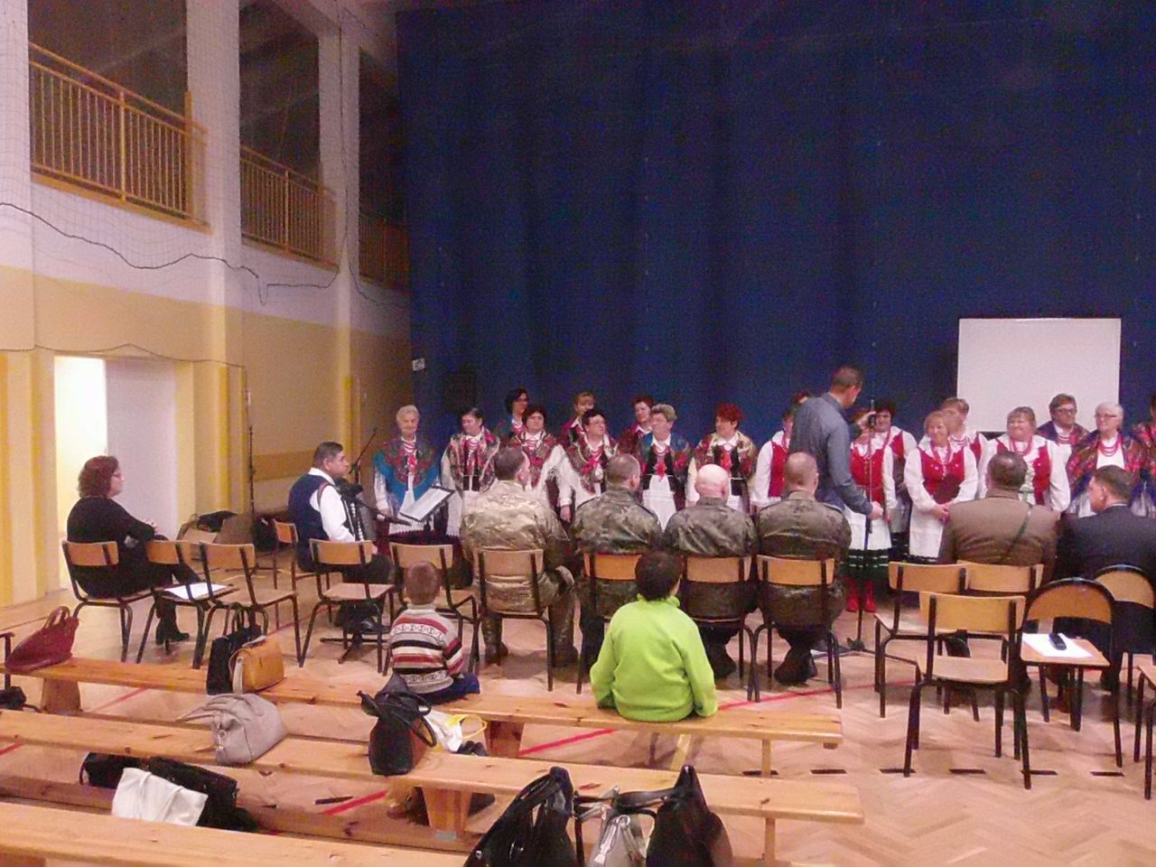Po gimnazjalistach wystąpiły połączone zespoły „Osinianek”, „Trębolanek” i zespołu Koła Gospodyń Wiejskich z Mirca. Akompaniował im Piotr Gąsowski. Zespoły zaprezentowały się z następującymi utworami: ,,Śpiewka 1920″, ,,Po partyzancie dziewczyna płacze” i ,,Nikt się żołnierzem nie rodzi” i ,,Przybyli ułani”. Wiersz poezji Pani Ireny Zakrzewskiej z Osin.