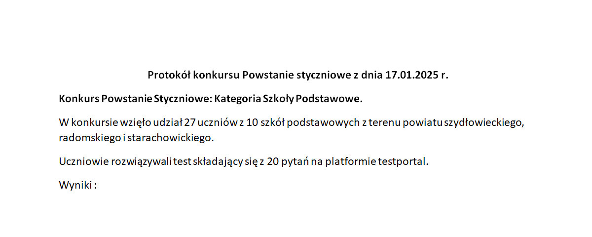 Wyniki Konkursu Powstanie Styczniowe: kategoria Szkoły Podstawowe.